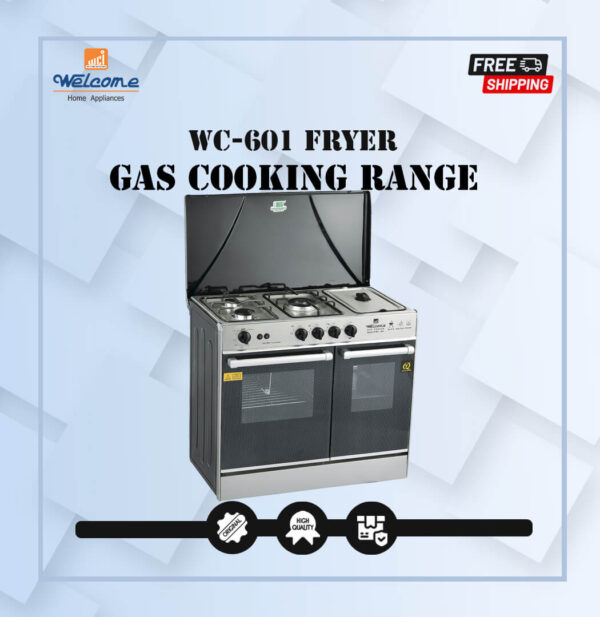 Welcome 3 Burner 6 in 1 Gas Cooking Range Plus Fryer WC-601 – Black and Grey