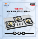 Welcome 3 Burner Steel Hob 34″ Inches Brass Burner Model – Silver